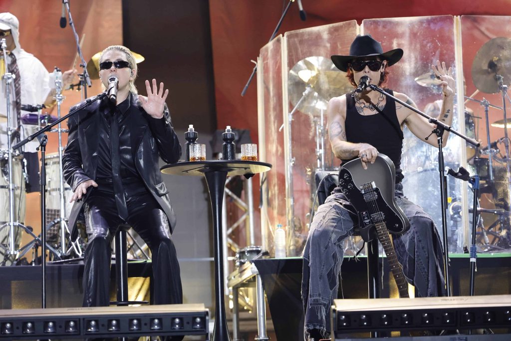 Minutos más tarde, los argentinos Ca7riel y Paco Amoroso irrumpieron con un estilo estrafalario: completamente de negro y vestimenta en cuero. A las 7:40, posaban como estatuas sobre el escenario, mientras la multitud gritaba por ellos.