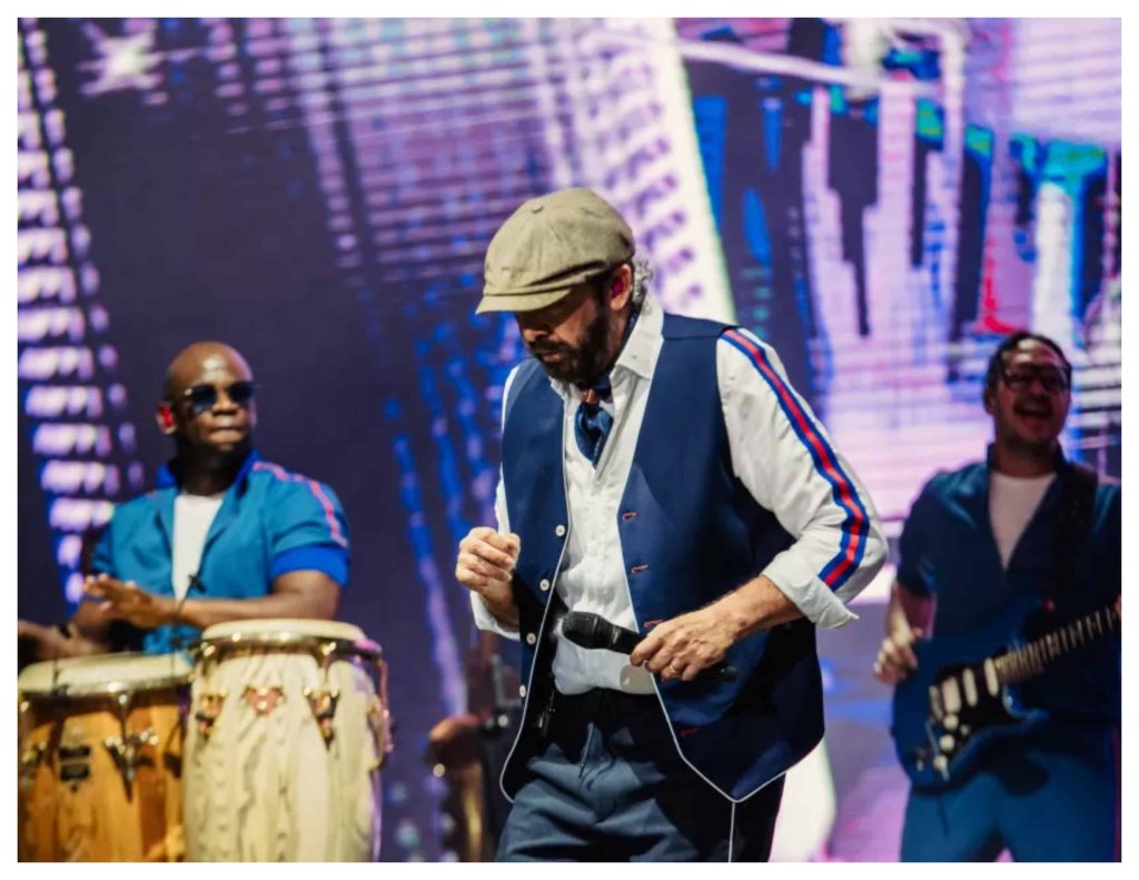 El concierto incluyó un repertorio que abarcó temas como “La bilirrubina”, “Ojalá que llueva café”, “Rosalía”, “Mambo 23” y “DJ Bachata”, acompañado de una banda en vivo y escenografía de alto nivel.