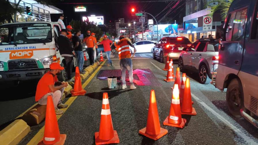 Brigadas del Ministerio de Obras Públicas comenzaron la noche de este viernes a borrar las señalizaciones que permitían los giros a la izquierda en varias intersecciones de la avenida Tiradentes, en el Distrito Nacional. La medida forma parte de la segunda fase del plan de reordenamiento vial implementado por el Instituto Nacional de Tránsito y Transporte Terrestre (Intrant), dentro del programa “RD se mueve“.