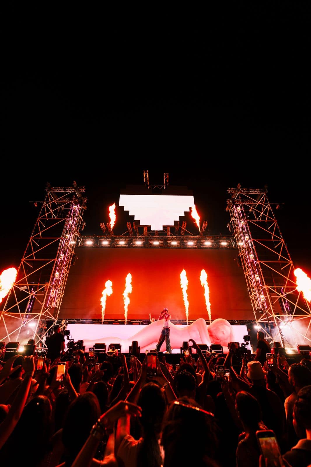 Tras tres cambios de ropa, la silueta de una mujer se infló en el escenario, abarcando el espacio de extremo a extremo, para dar paso a los momentos finales, que llegaron con el exitoso “Veldá”, grabada con Bad Bunny.